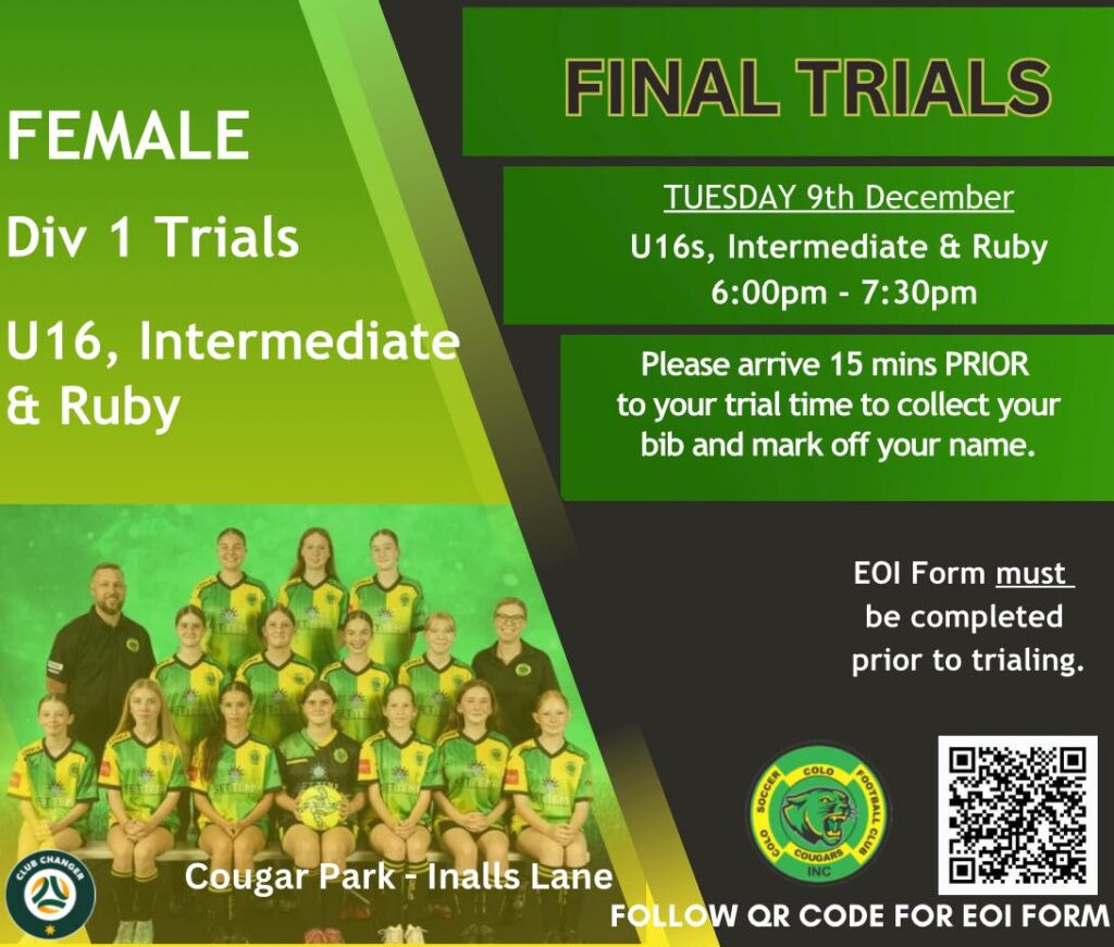 These trials are for players wishing to be considered for Division 1 teams only (grading for other divisions will happen in 2026).